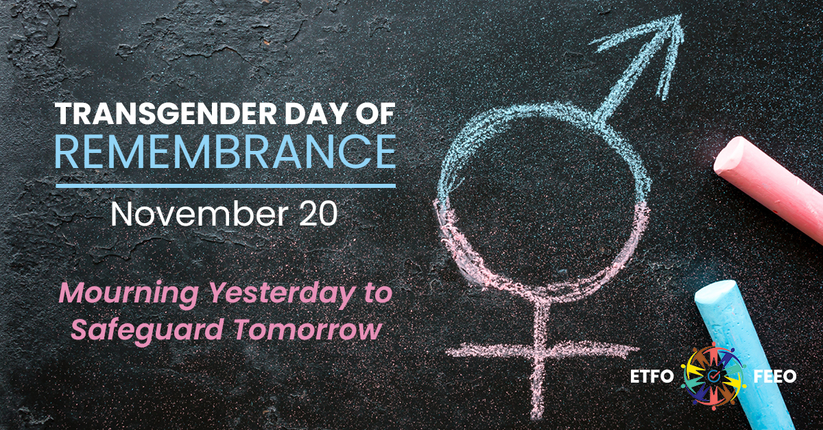 Each year, ETFO recognizes the International Transgender Day of Remembrance (TDOR). It is a day to remember transgender people, gender non-conforming individuals and those perceived to be transgender who have been murdered because of hate.