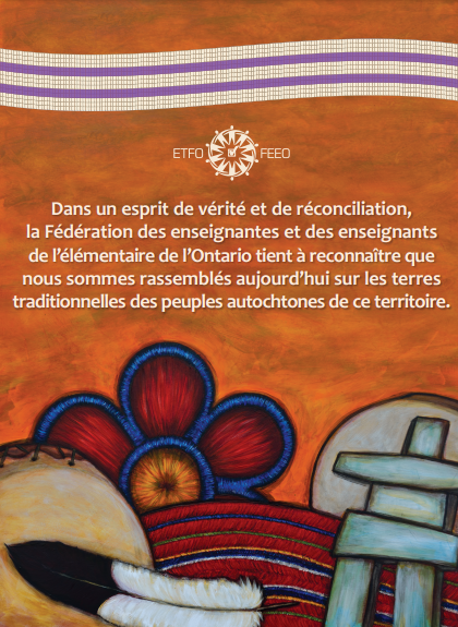 Dans un esprit de vérité et de réconciliation, la Fédération des enseignantes et des enseignants de l’élémentaire de l’Ontario tient à reconnaître que nous sommes rassemblés aujourd’hui sur les terres traditionnelles des peuples autochtones de ce territoire.