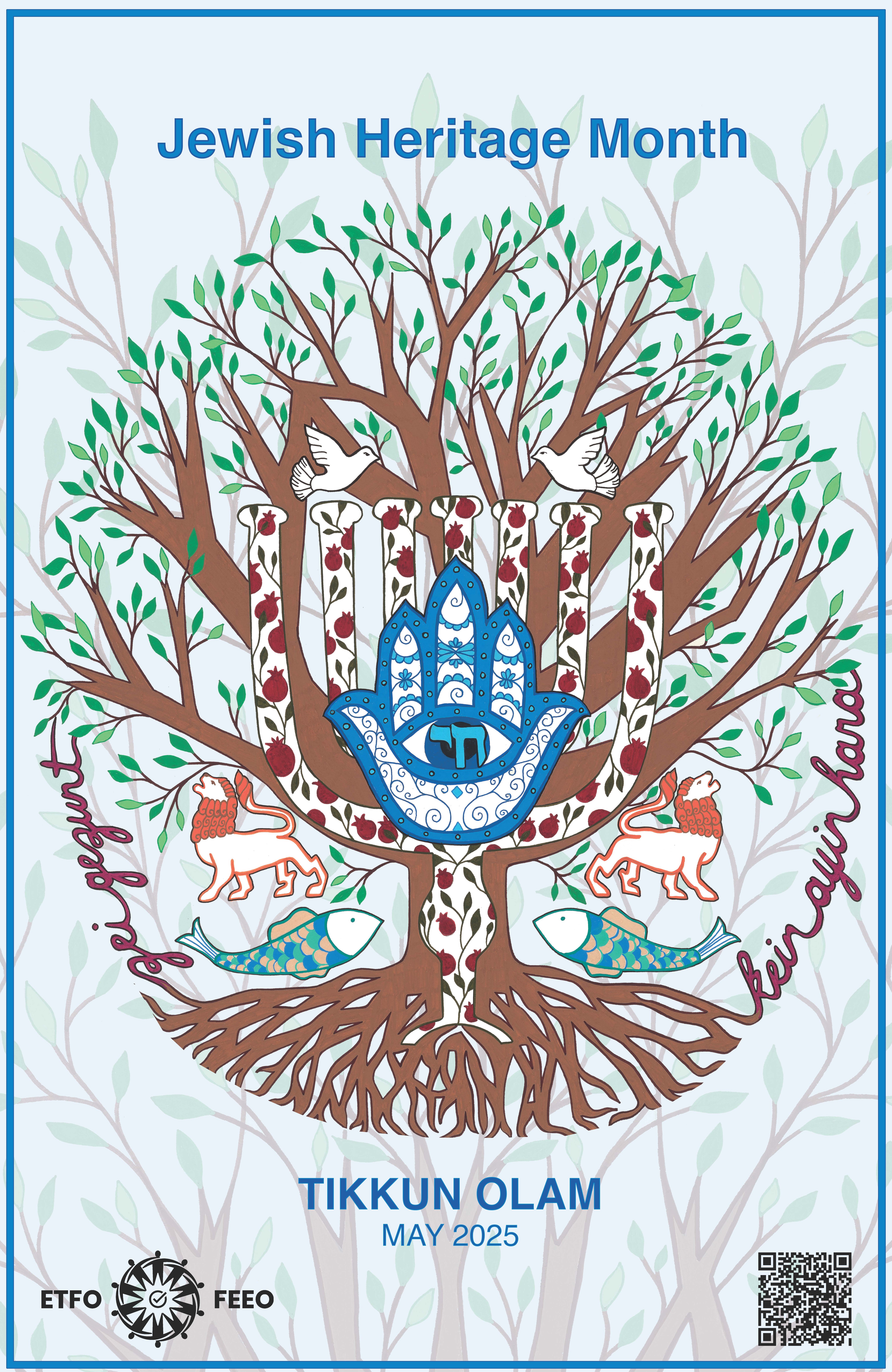 May is Canadian Jewish Heritage Month, as established by the federal government in 2018. This year's poster, with artwork by Toronto artist Rosette Sund, is entitled “Tikkun Olam,” and celebrates Jewish diversity through symbols and images. The Jewish practice of tikkun olam unifies all cultures. It is the idea that through our actions and good deeds, we can make the world a better place for everyone. The discussion guide includes classroom connections for Kindergarten to Intermediate levels and includes learning about prominent Jewish Canadians.