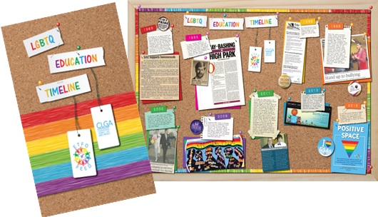 For the 2014 WorldPride, the Canadian Lesbian and Gay Archives (CLGA) and Pride Toronto collaborated on the LGBTQ Education Timeline poster. The poster was initially created to show the historical changes in LGBTQ education and issues in Canada.